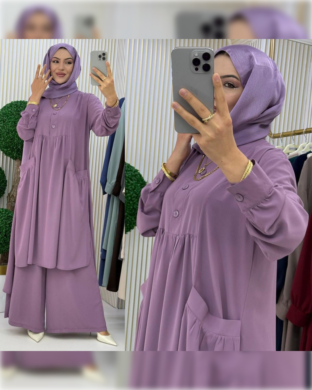 Casual Silky 2-Pieces Outfit in Light Purple Shade طقم حريري عملي مكون من قطعتين باللون البنفسجي الفاتح الجميل