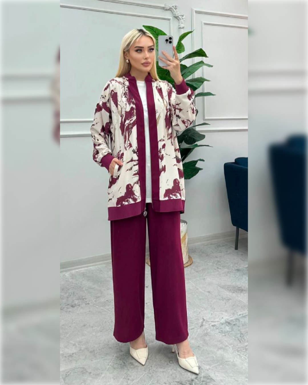 Elegant Lightweight Sporty Outfit of 3-Pieces in Maroon Shade طقم رياضي خفيف و أنيق من ثلاثة قطع باللون الخمري الجميل