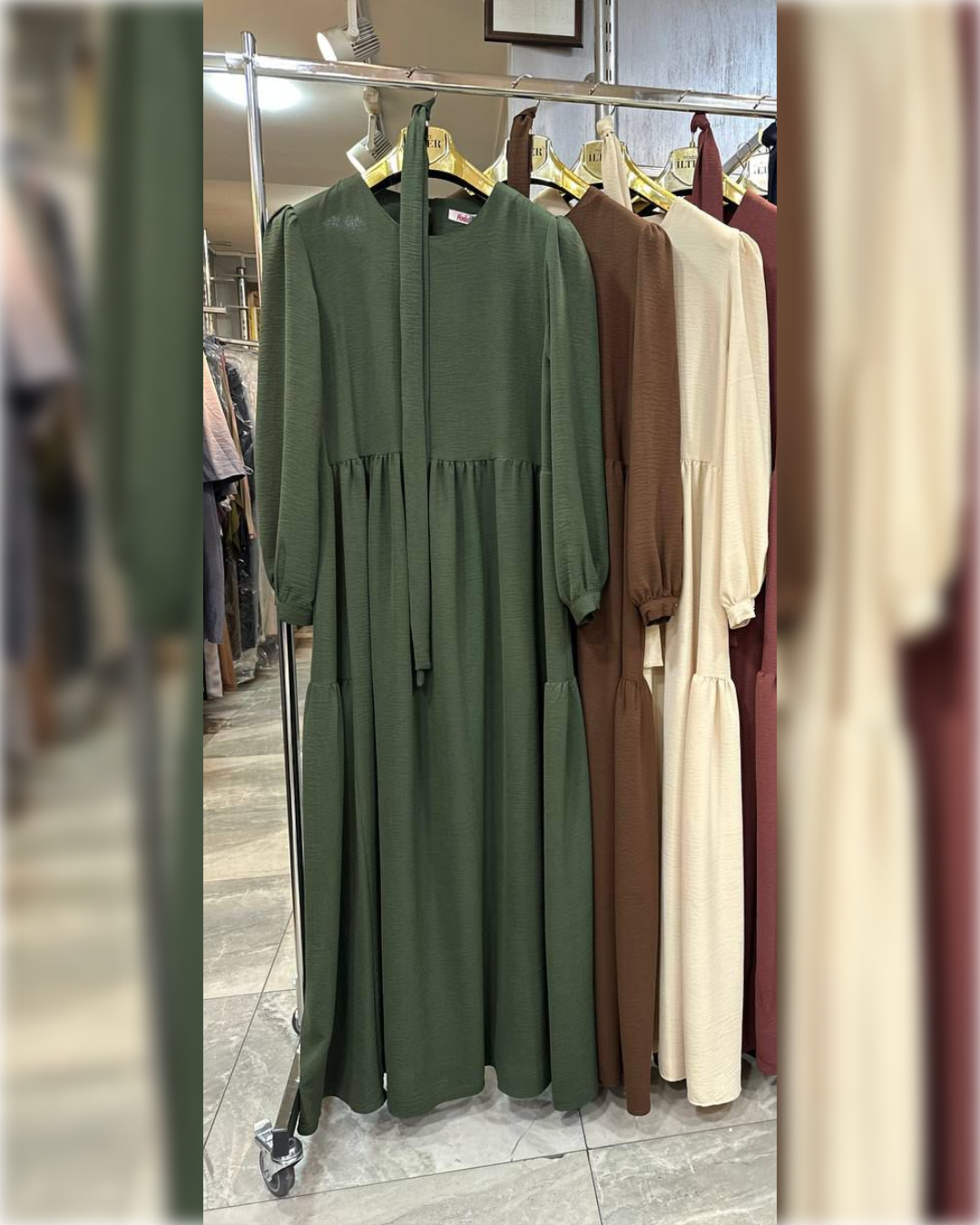 Samira Aerobin - High Waist Dress in 2 Gorgeous Shades (Beige & Green) فستان سميرة الصيفي ذو الخصر العالي من نسيج الأيروبين باللون الأخضر ولون البيج الجميل